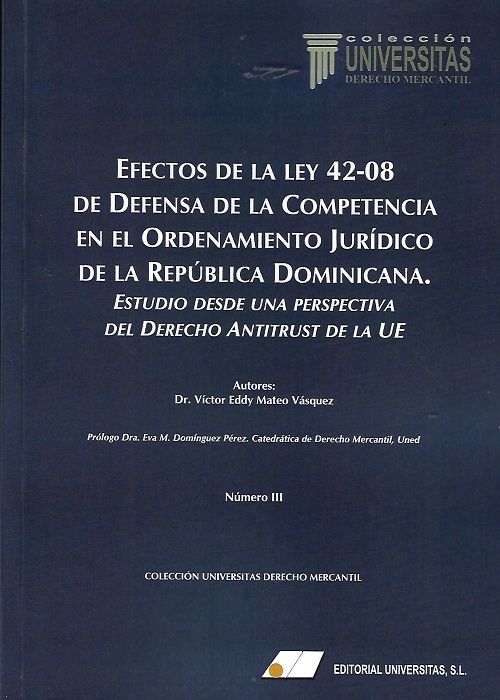 EFECTOS DE LA LEY 42-08 DE DEFENSA DE LA COMPETENCIA EN EL ORDENAMIENTO JURÍDICO DE LA REPÚBLICA DOMINICANA. ESTUDIO DESDE UNA PERSPECTIVA DEL DERECHO ANTITRUST DE LA UE. Colección Derecho Mercantil Nº3EFECTOS DE LA LEY 42-08 DE DEFENSA DE LA COMPETENCIA EN EL ORDENAMIENTO JURÍDICO DE LA REPÚBLICA DOMINICANA. ESTUDIO DESDE UNA PERSPECTIVA DEL DERECHO ANTITRUST DE LA UE. Colección Derecho Mercantil Nº3